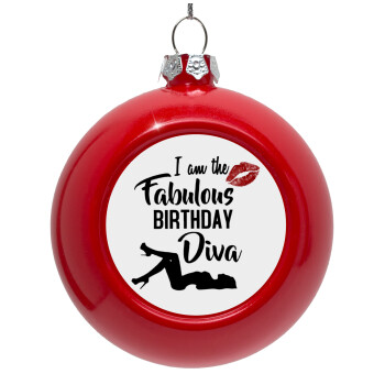 I am the fabulous Birthday Diva, Red Christmas tree ornament bauble 8cm