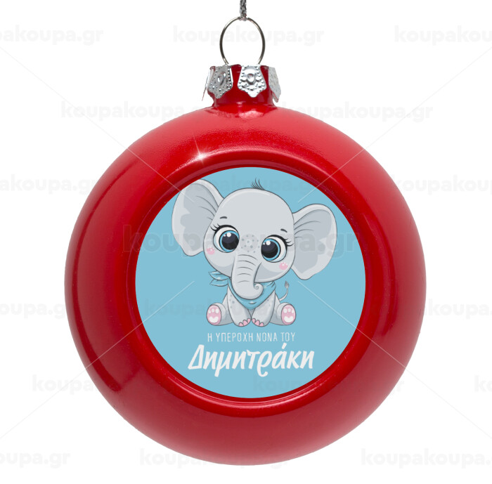Η νονά μου, ελεφαντάκι γαλάζιο, Red Christmas tree ornament bauble 8cm