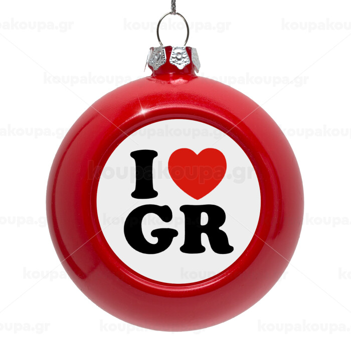 I Love GR, Red Christmas tree ornament bauble 8cm