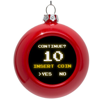 Continue? YES - NO, Red Christmas tree ornament bauble 8cm