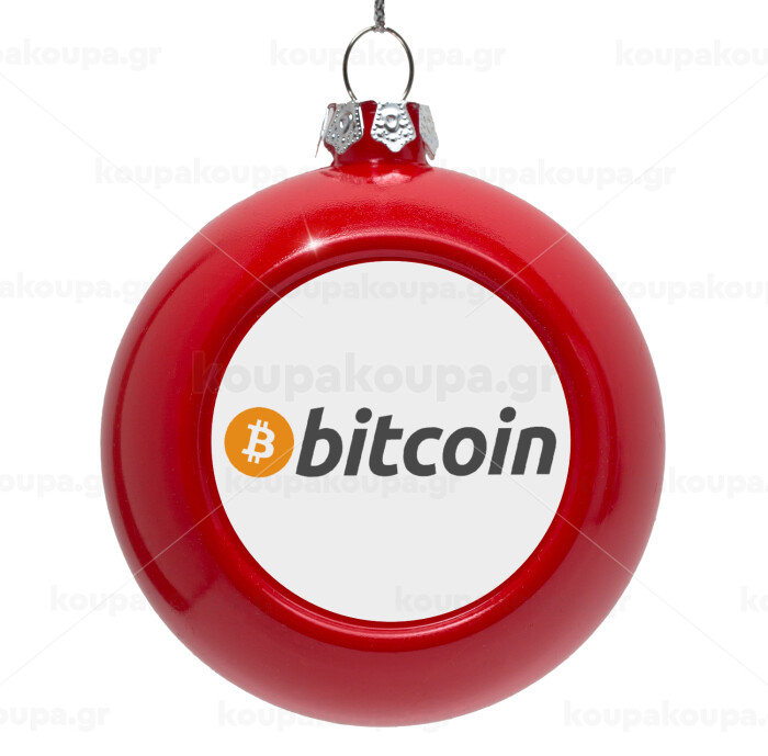 Bitcoin Crypto, Red Christmas tree ornament bauble 8cm