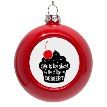 Life is too short, to skip Dessert, Red Christmas tree ornament bauble 8cm
