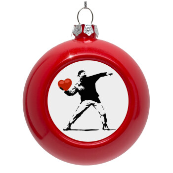 Banksy (The heart thrower), Red Christmas tree ornament bauble 8cm