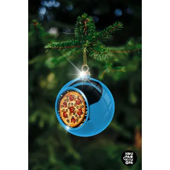 Pizza, Blue Christmas tree ball ornament 8cm