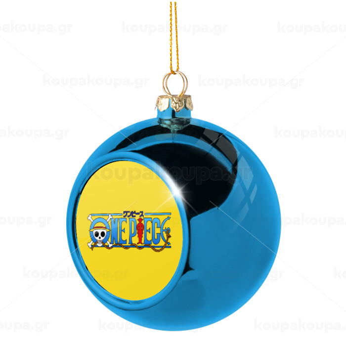 Onepiece logo, Blue Christmas tree ball ornament 8cm