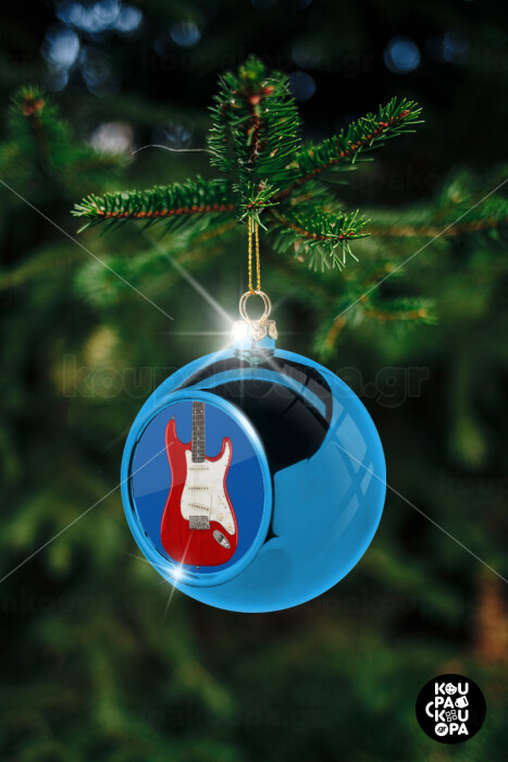 Guitar stratocaster, Blue Christmas tree ball ornament 8cm