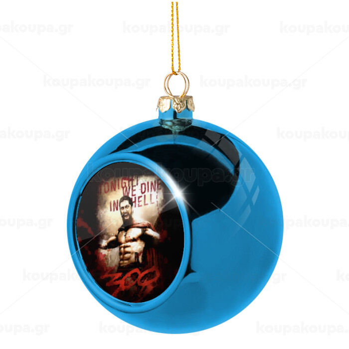 300 Tonight we dine in hell!, Blue Christmas tree ball ornament 8cm