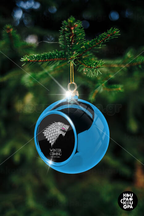 GOT House of Starks, winter coming, Blue Christmas tree ball ornament 8cm