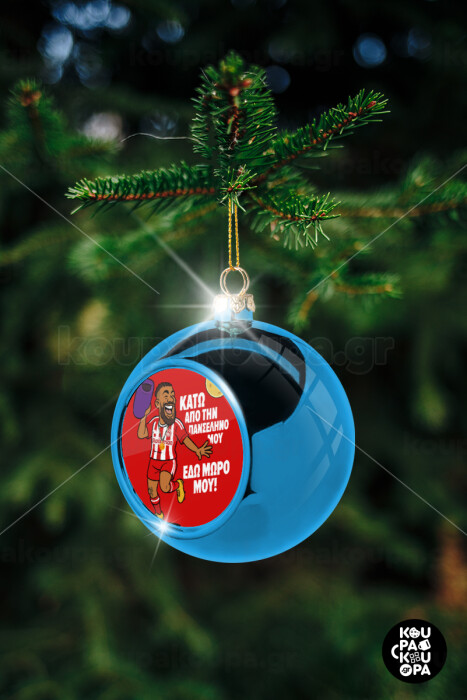 Ροντινέι, "ΚΑΤΩ ΑΠΟ ΤΗΝ ΠΑΝΣΕΛΗΝΟ ΜΟΥ!", Blue Christmas tree ball ornament 8cm