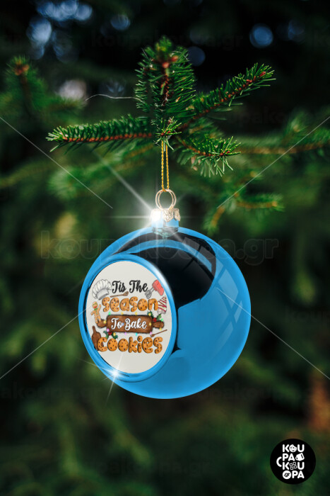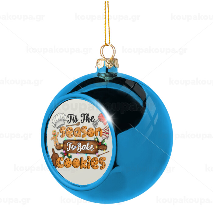 Tis The Season To Bake Cookies, Blue Christmas tree ball ornament 8cm