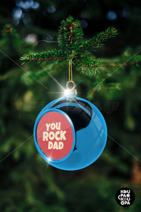 YOU ROCK DAD, Blue Christmas tree ball ornament 8cm
