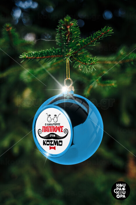 Ο καλύτερος παππούς του κόσμου!, Blue Christmas tree ball ornament 8cm
