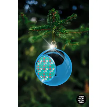 I Love You hearts rings & kiss pattern, Blue Christmas tree ball ornament 8cm
