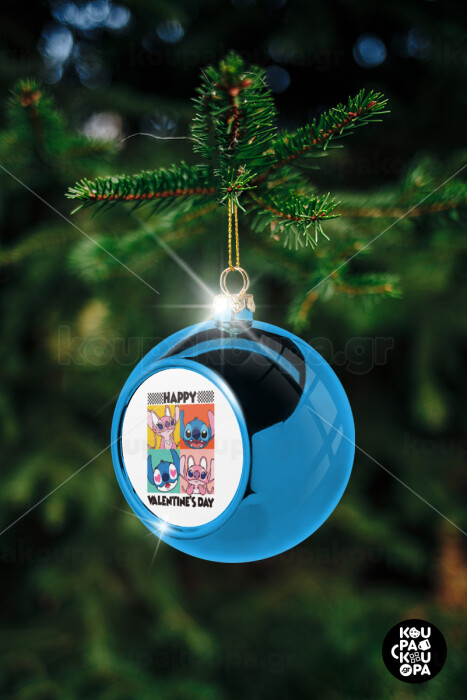 Lilo & Stitch Happy valentines day, Blue Christmas tree ball ornament 8cm