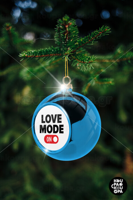 LOVE MODE ON, Blue Christmas tree ball ornament 8cm