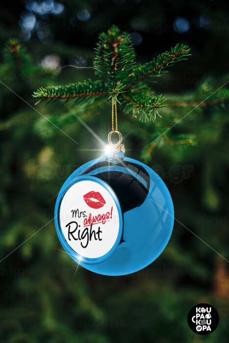 Mrs always right kiss, Blue Christmas tree ball ornament 8cm