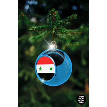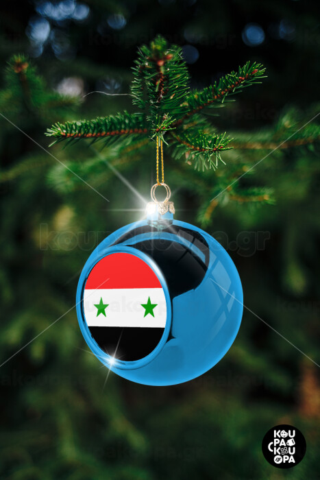 Syria flag, Blue Christmas tree ball ornament 8cm