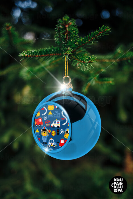 Rescue team cartoon, Blue Christmas tree ball ornament 8cm