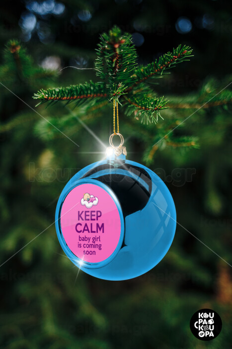 KEEP CALM baby girl is coming soon!!!, Blue Christmas tree ball ornament 8cm