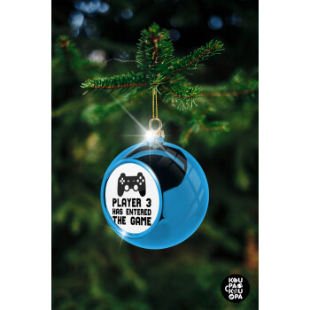 Player 3 has entered the Game, Blue Christmas tree ball ornament 8cm