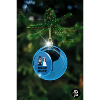 8bit Game Over Couple Wedding, Blue Christmas tree ball ornament 8cm