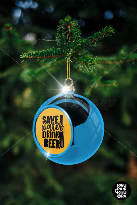 Save Water, Drink BEER, Blue Christmas tree ball ornament 8cm