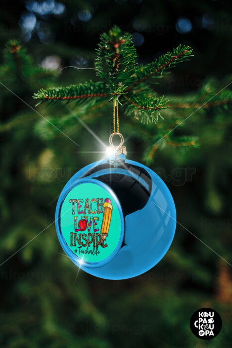 Teach, Love, Inspire, Blue Christmas tree ball ornament 8cm
