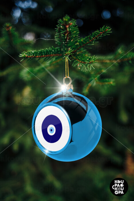 Χάντρα γαλαζιά, Blue Christmas tree ball ornament 8cm