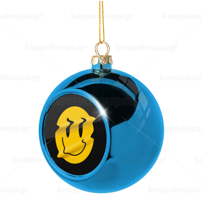 Smile avatar distrorted, Blue Christmas tree ball ornament 8cm