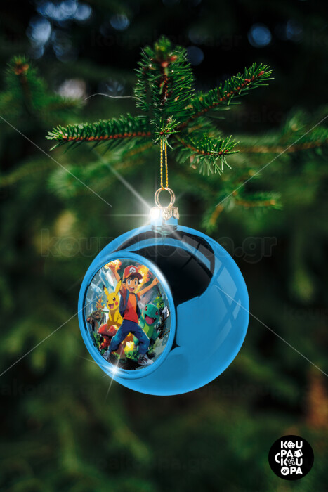 Ash Ketchum & Pikachu, Blue Christmas tree ball ornament 8cm