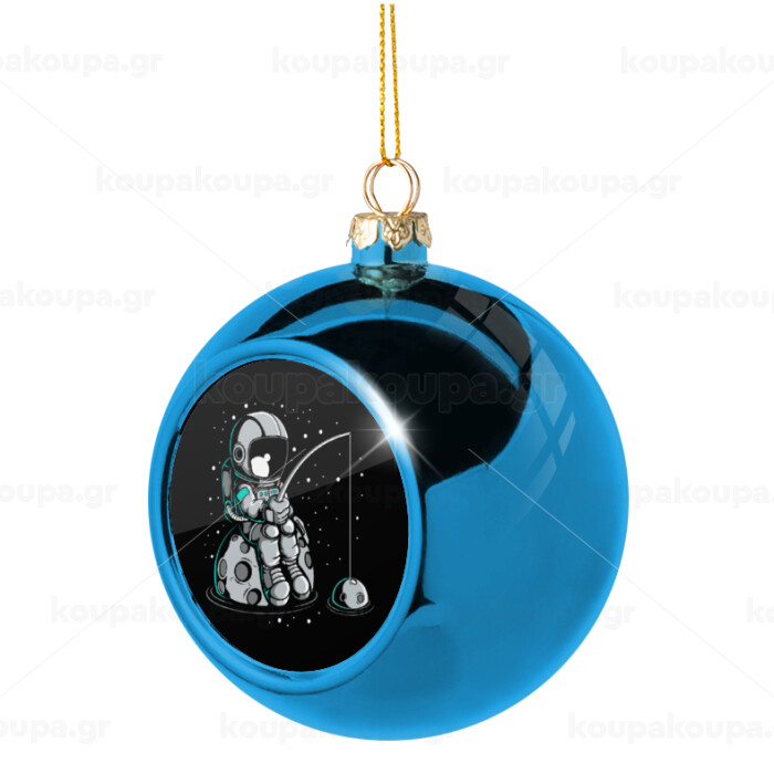 Little astronaut fishing, Blue Christmas tree ball ornament 8cm