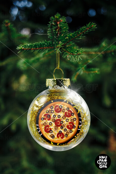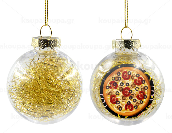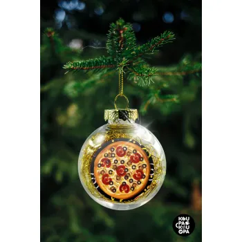 Pizza, Transparent Christmas tree ball ornament with gold filling 8cm