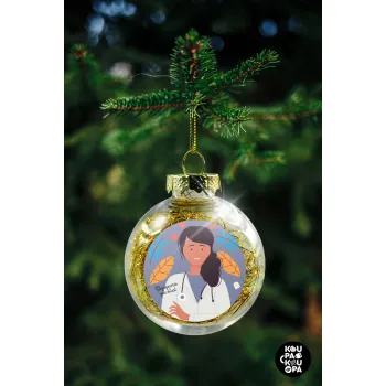 Doctor Thanks You, Transparent Christmas tree ball ornament with gold filling 8cm