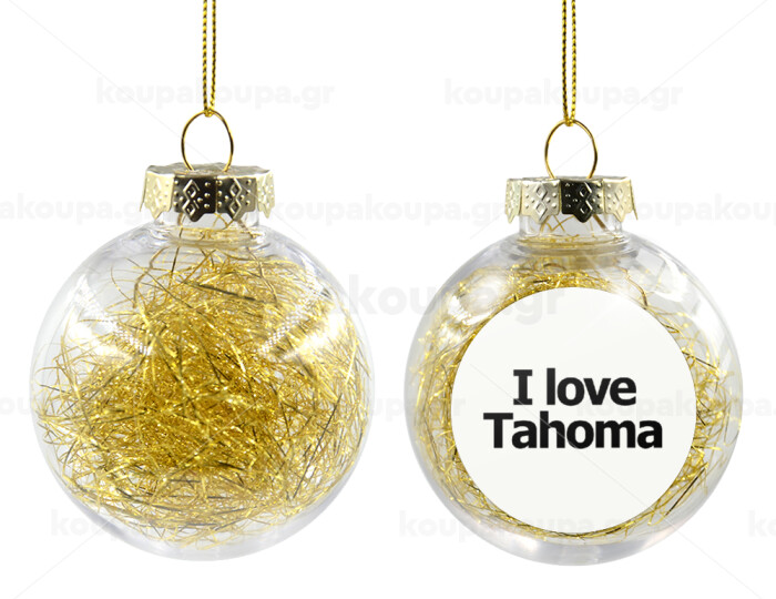 I love Tahoma, Transparent Christmas tree ball ornament with gold filling 8cm