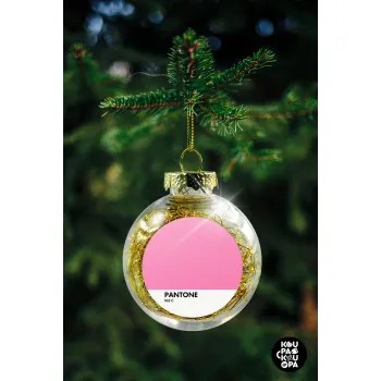 PANTONE Pink C, Transparent Christmas tree ball ornament with gold filling 8cm