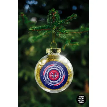 Wind compass, Transparent Christmas tree ball ornament with gold filling 8cm