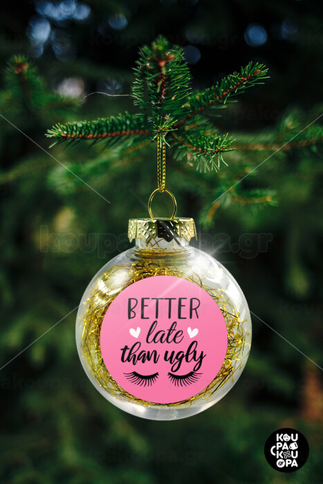 Better Late than ugly hearts, Transparent Christmas tree ball ornament with gold filling 8cm