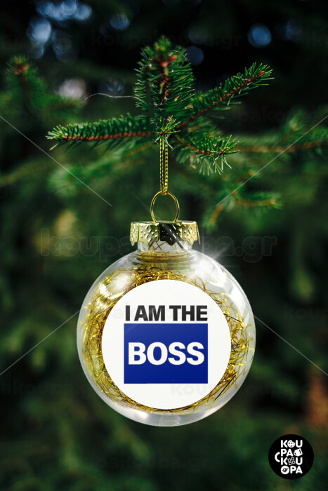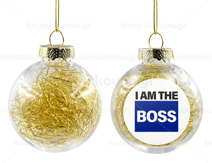I am the Boss, Transparent Christmas tree ball ornament with gold filling 8cm