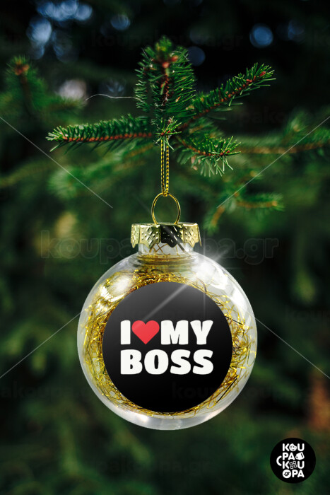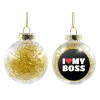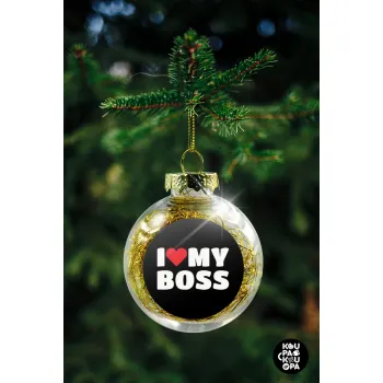 I LOVE MY BOSS, Transparent Christmas tree ball ornament with gold filling 8cm