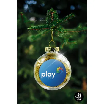Play by ΟΠΑΠ, Transparent Christmas tree ball ornament with gold filling 8cm