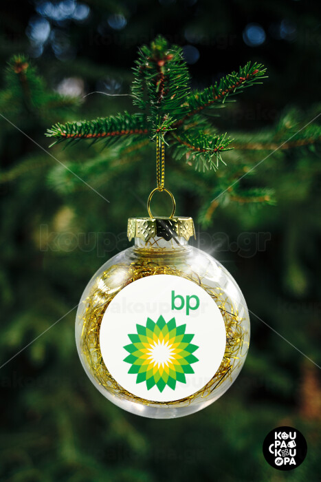 Πρατήριο καυσίμων BP, Transparent Christmas tree ball ornament with gold filling 8cm
