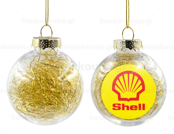 Πρατήριο καυσίμων SHELL, Transparent Christmas tree ball ornament with gold filling 8cm