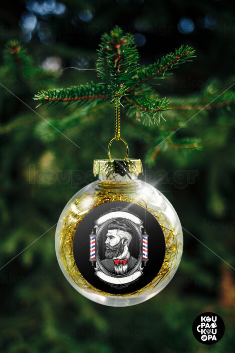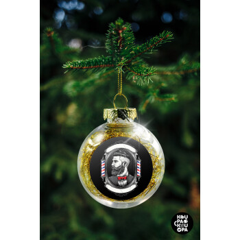 Barber shop, Transparent Christmas tree ball ornament with gold filling 8cm