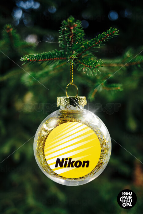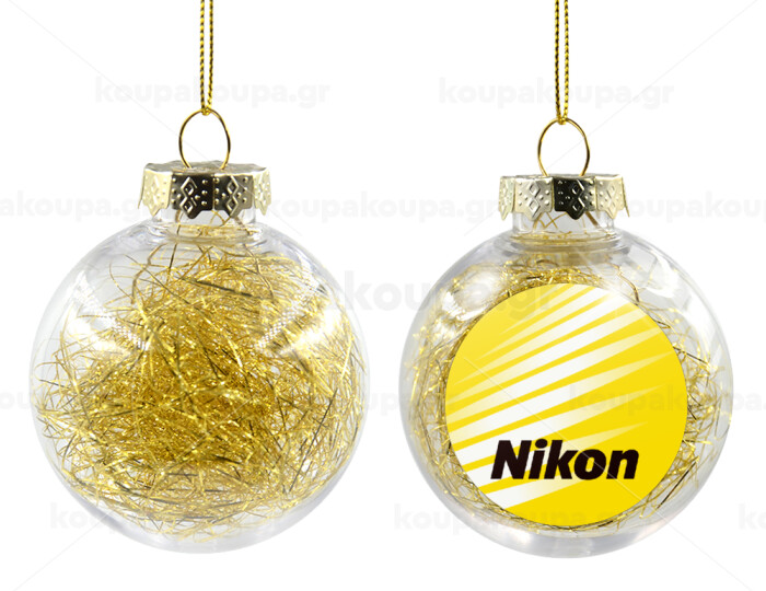 Nikon, Transparent Christmas tree ball ornament with gold filling 8cm