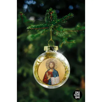 Jesus, Transparent Christmas tree ball ornament with gold filling 8cm