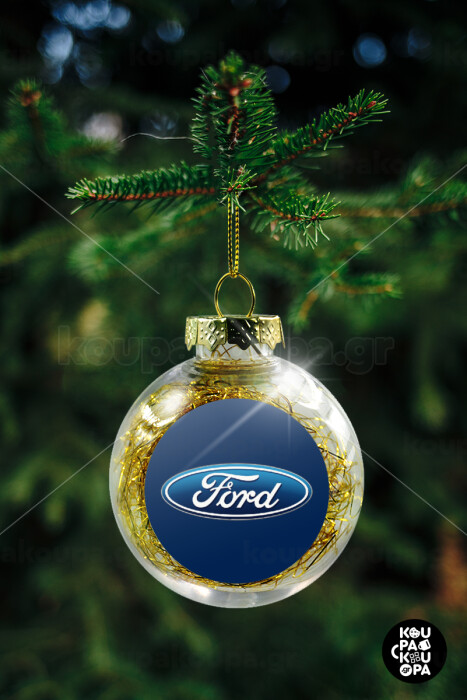Ford, Transparent Christmas tree ball ornament with gold filling 8cm