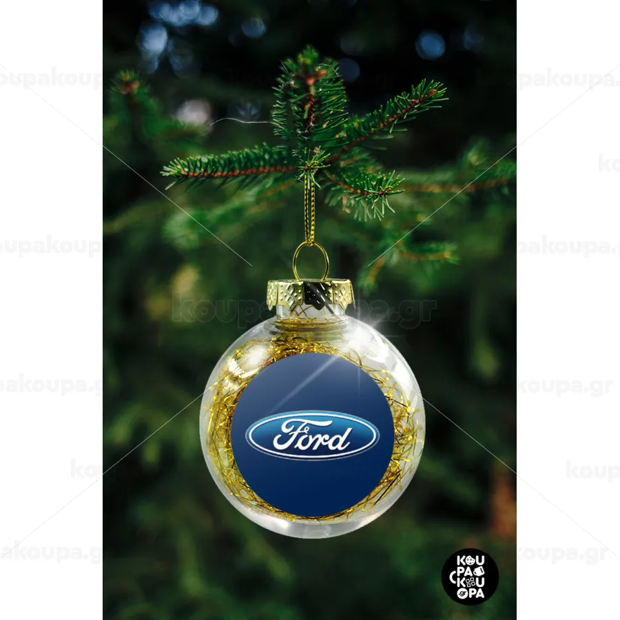 Ford, Transparent Christmas tree ball ornament with gold filling 8cm