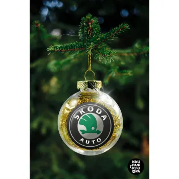 SKODA, Transparent Christmas tree ball ornament with gold filling 8cm