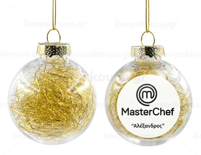 Master Chef, Transparent Christmas tree ball ornament with gold filling 8cm