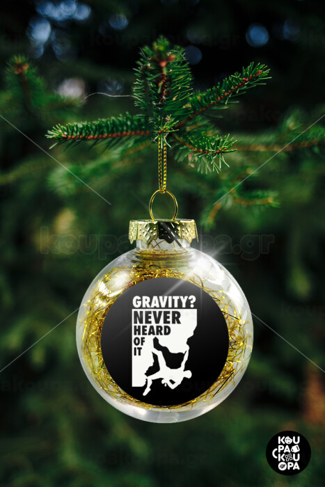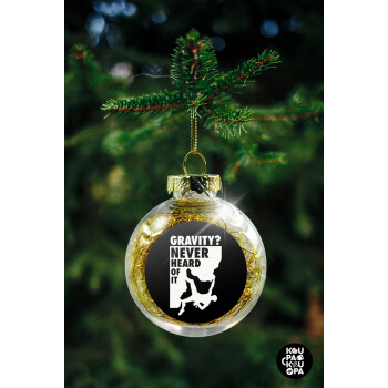 Gravity? Never heard of that!, Transparent Christmas tree ball ornament with gold filling 8cm